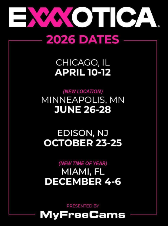 “We can’t begin to express how excited we are for this year’s events, especially our return to Chicago,” said J. Handy, director of 3XEvents, producers of EXXXOTICA. “From where we started 21 years ago to where we are now blows my mind. We owe a big thank you to all our sponsors, exhibitors, and the hundreds of thousands of fans who have supported us through the years. Our gratitude is infinite, and we can’t wait to celebrate with everyone in 2026.”